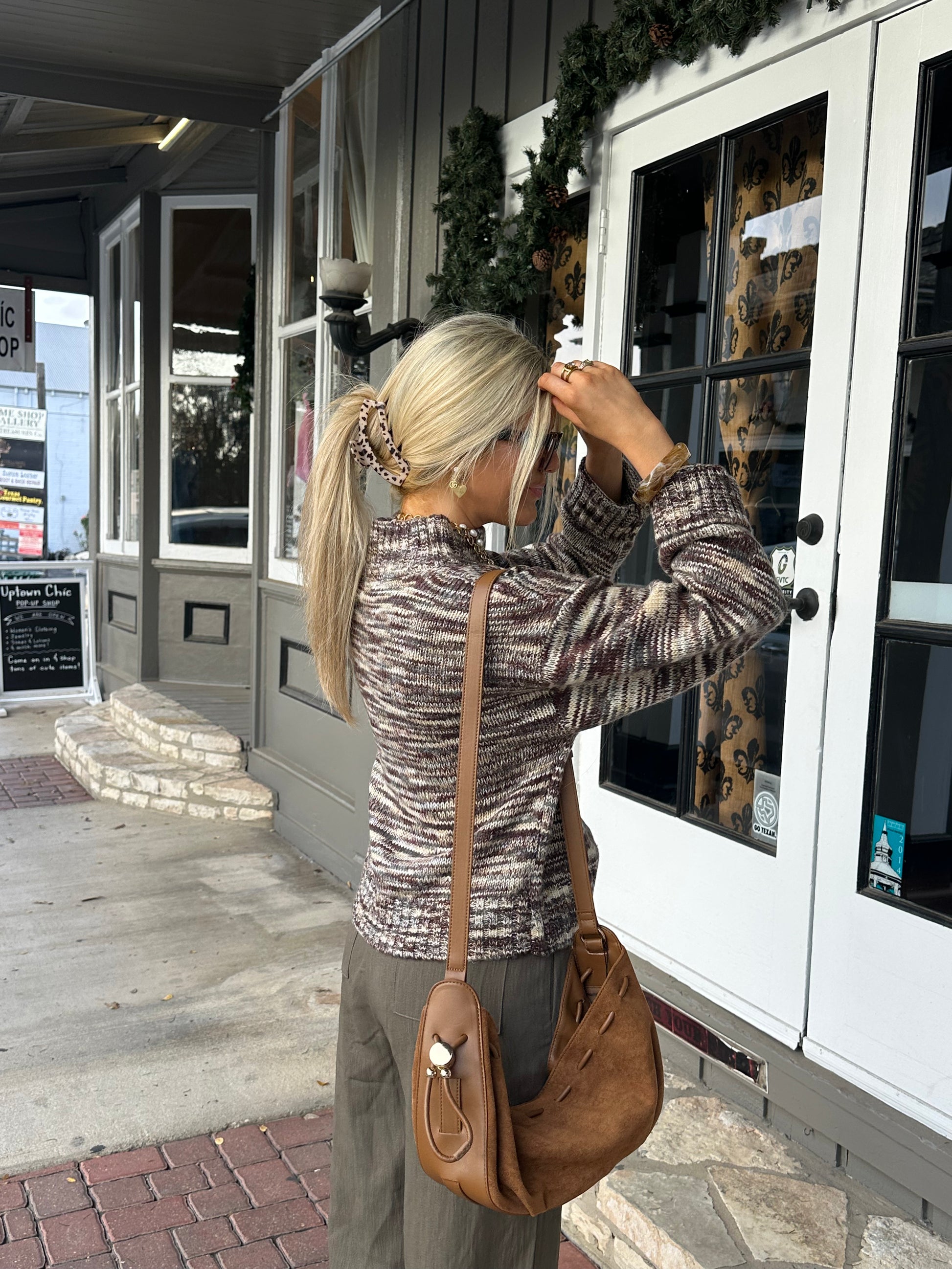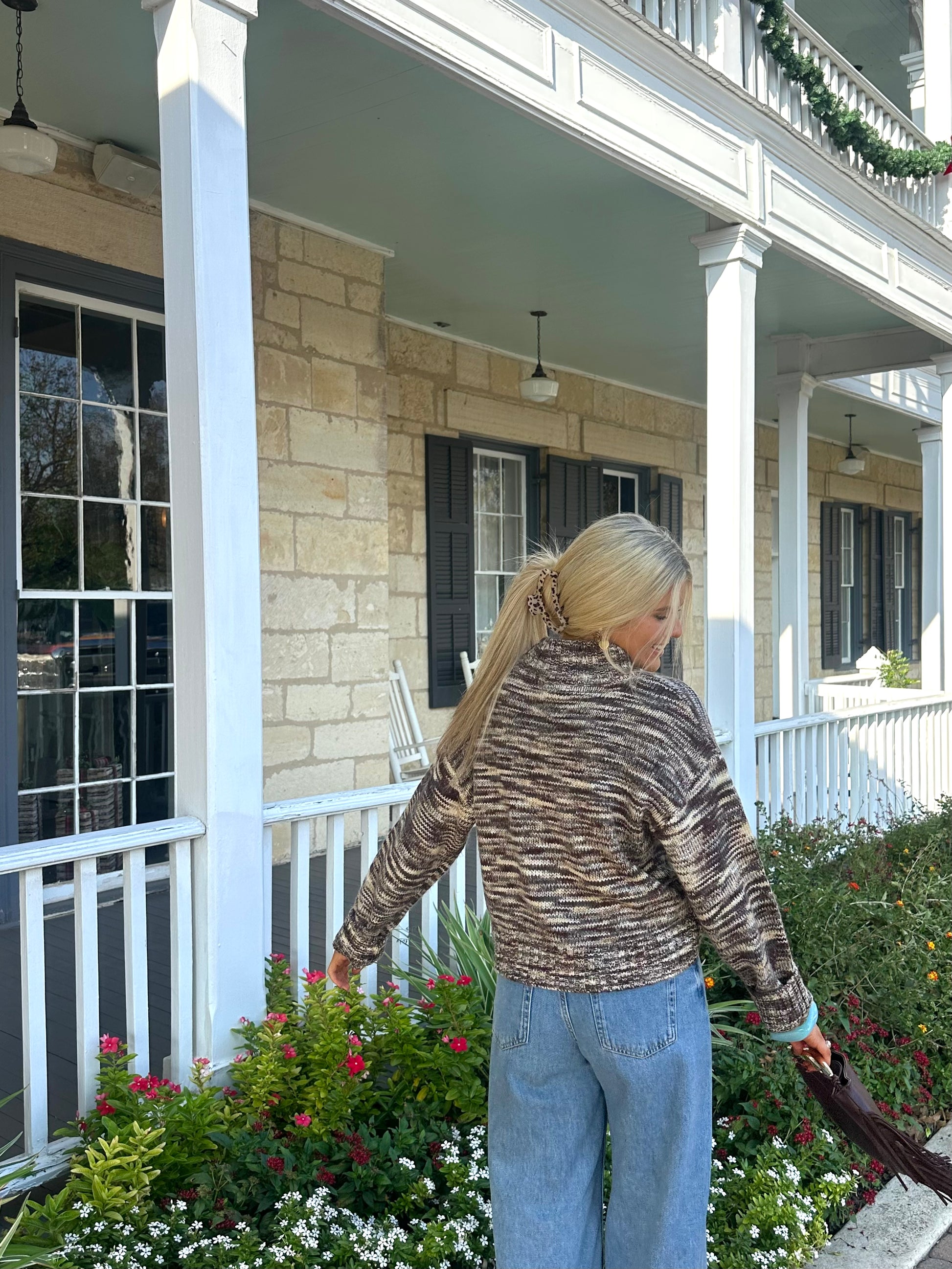 Look no further for the perfect mock neck sweater! The Rocky Sweater features a beautiful blend of brown tones in a soft, cozy knit that’s effortless to style all season long.