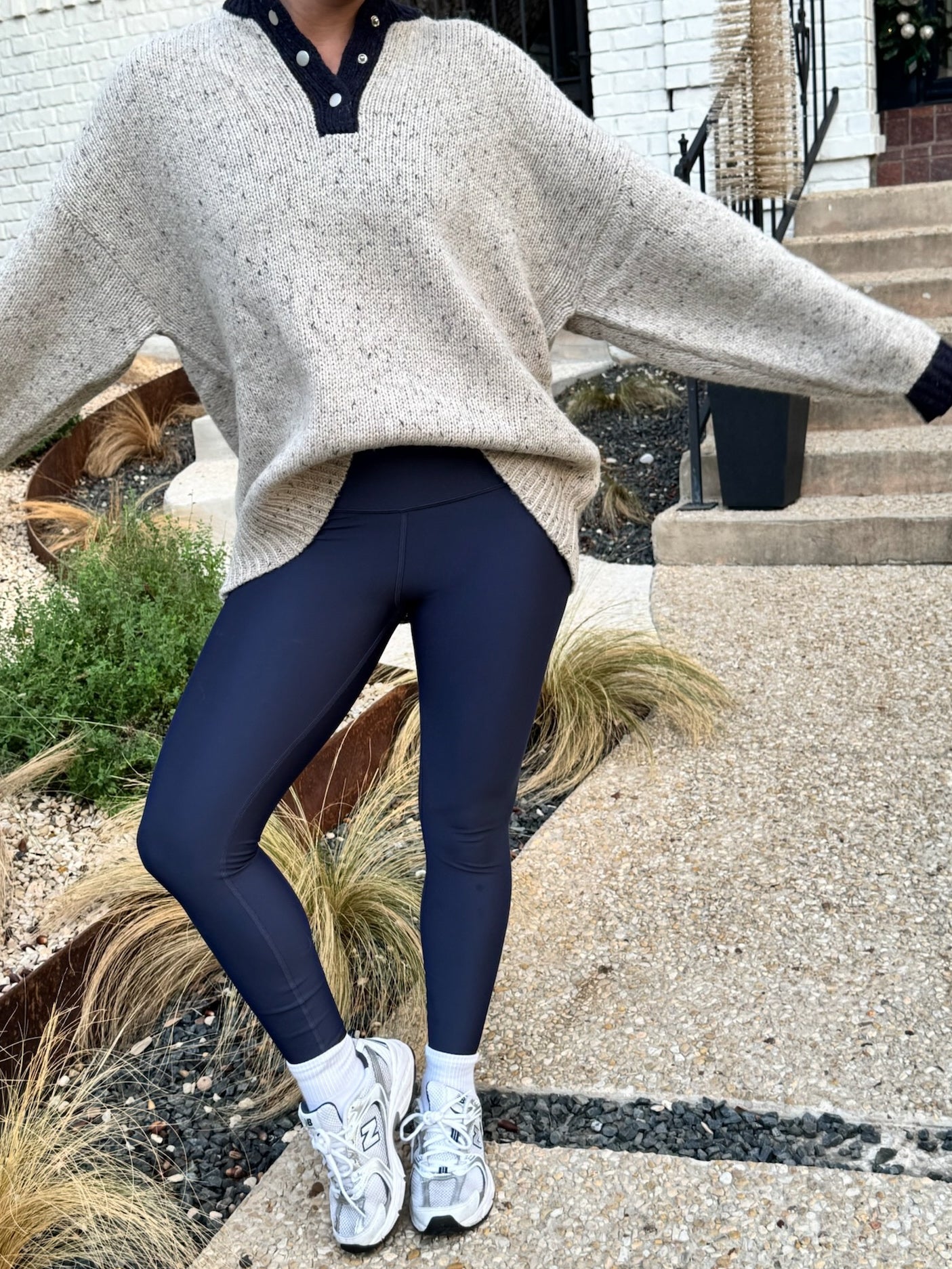 Look no further for the perfect oversized vintage inspired sweater — just like one you’d steal from your dad’s closet! Featuring a cozy gray speckled knit with navy accents and a contrasting button collar for a classic collegiate feel. The slouchy, relaxed fit pairs effortlessly with leggings, denim, or for easy layering on chilly days. A timeless neutral you’ll reach for again and again!