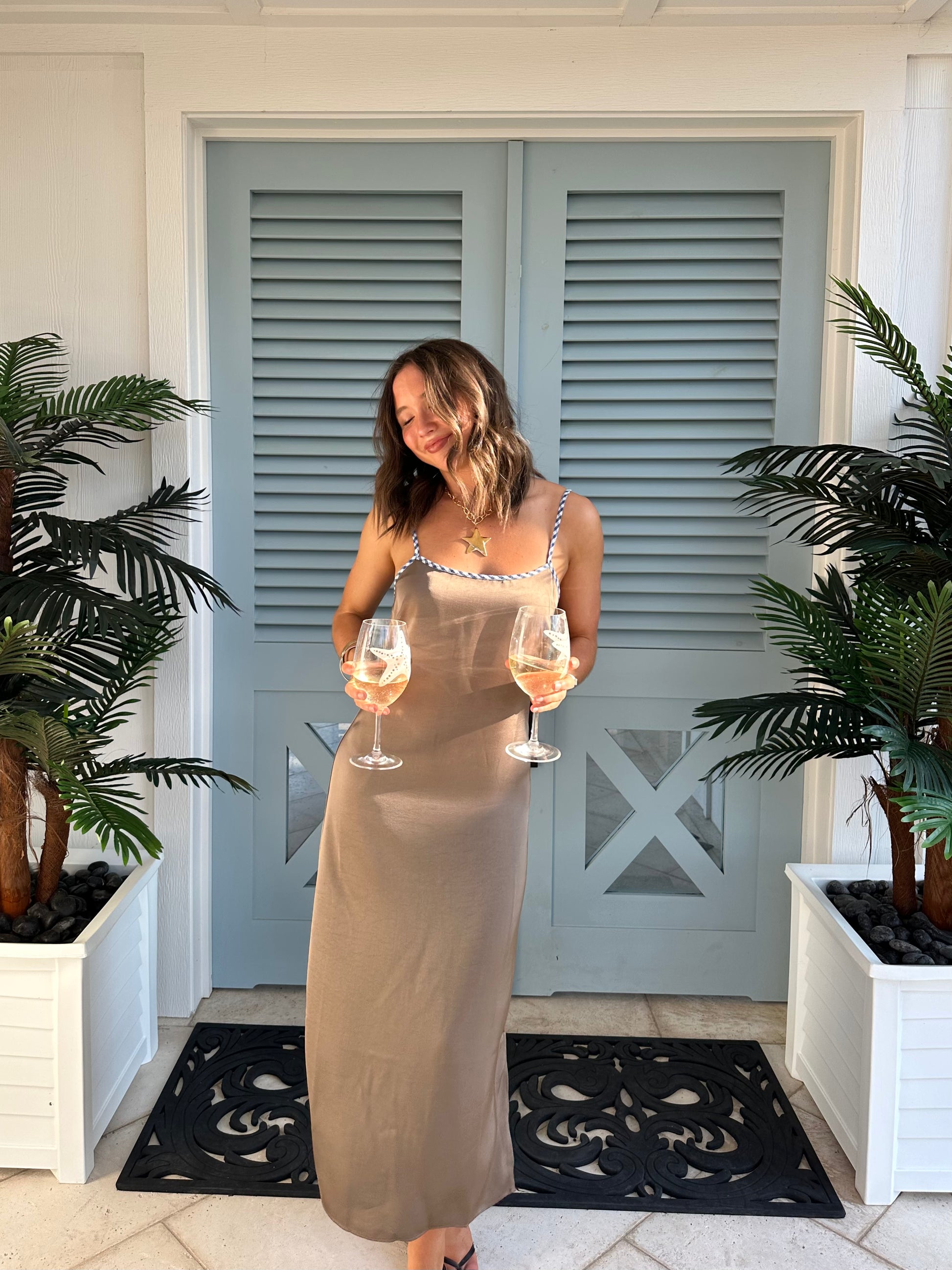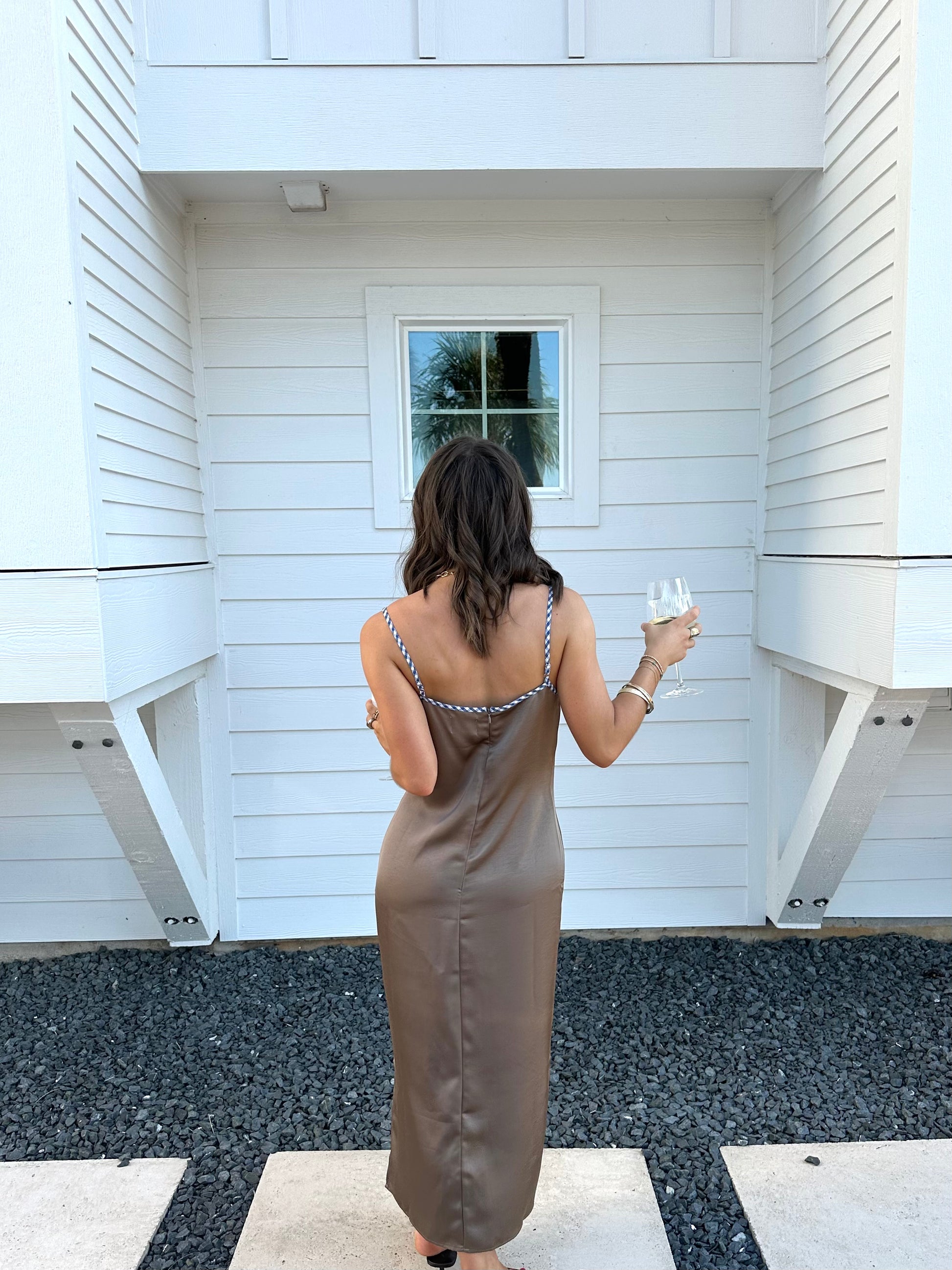 The Marlow Midi is one of a kind! This charming dress features a rich silk look fabric with a gingham hem detail and a back zipper closure. Dress it down with your favorite sandals or elevate the look with a sleek boot or heel.